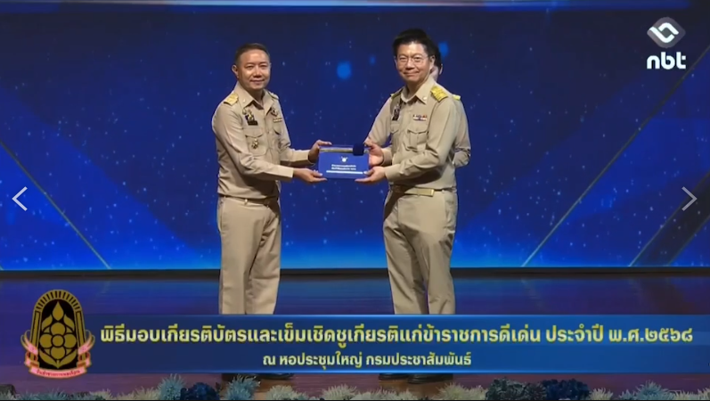วันที่ 1 เมษายน 2569 นายณัฐพล รังสิตพล ปลัดกระทรวงอุตสาหกรรม เข้าร่วมพิธีมอบเกียรติบัตรและเข็มเชิดชูเกียรติแก่ข้าราชการพลเรือนดีเด่น ประจำปี พ.ศ. 2568 เนื่องในวันข้าราชการพลเรือน ประจำปี พ.ศ. 2569