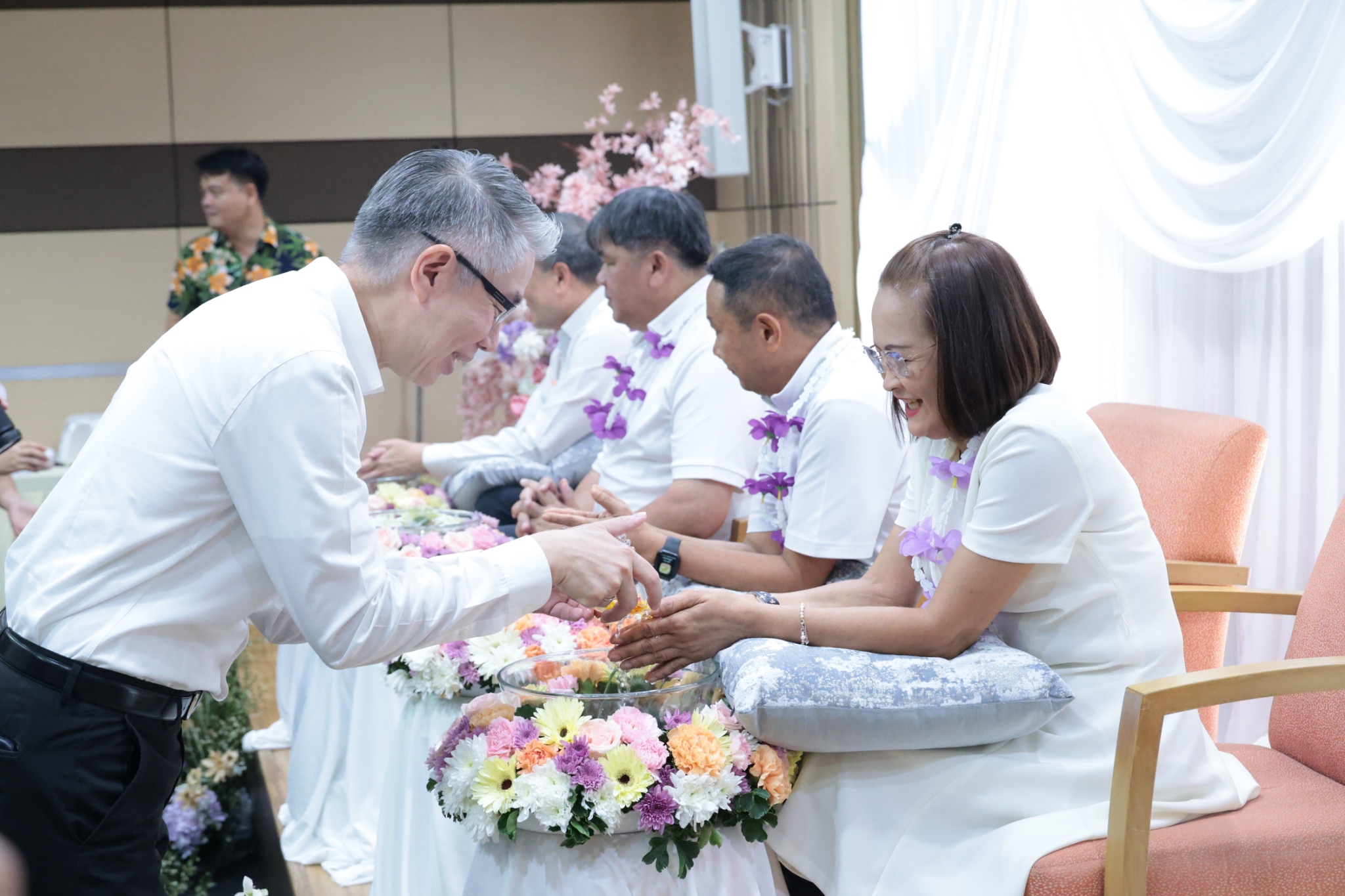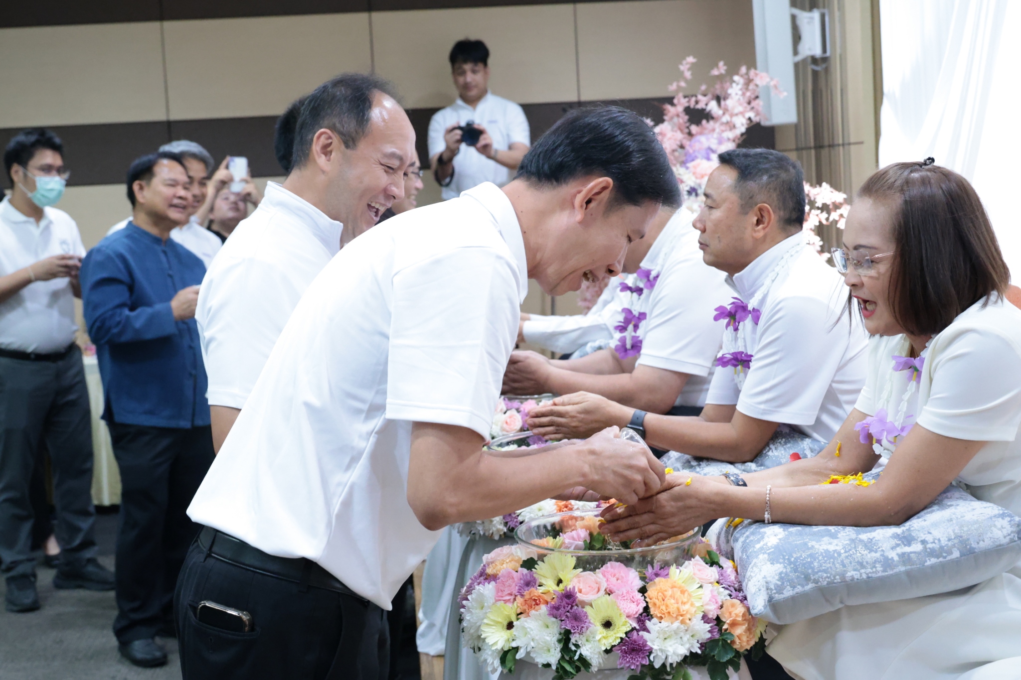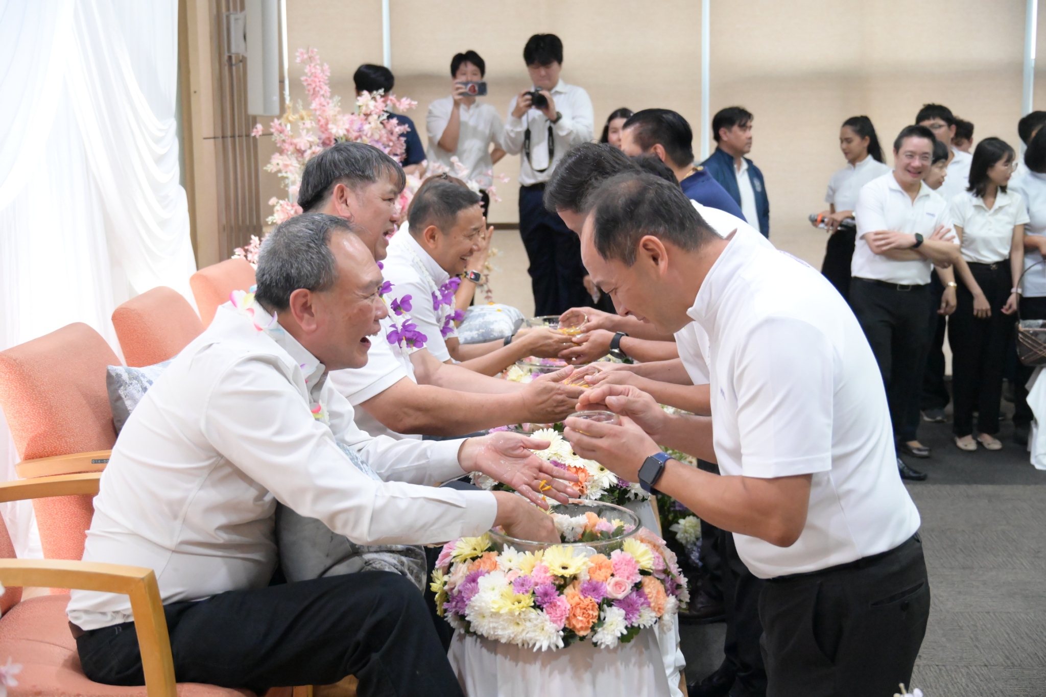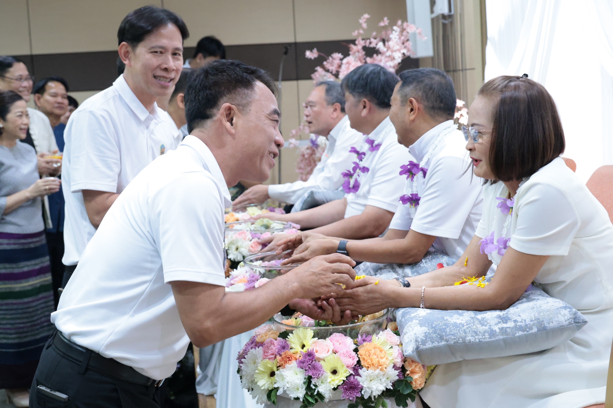จากนั้น ได้มีพิธีรดน้ำขอพรผู้บริหารที่ครบเกษียณอายุราชการฯ โดยปลัดกระทรวงอุตสาหกรรม พร้อมด้วยคณะผู้บริหาร ข้าราชการ และเจ้าหน้าที่ ได้ร่วมกันรดน้ำดำหัว เพื่อแสดงมุทิตาจิต และขอรับพรอันเป็นสิริมงคล เพื่อสืบสานประเพณีอันดีงามของไทยต่อไป