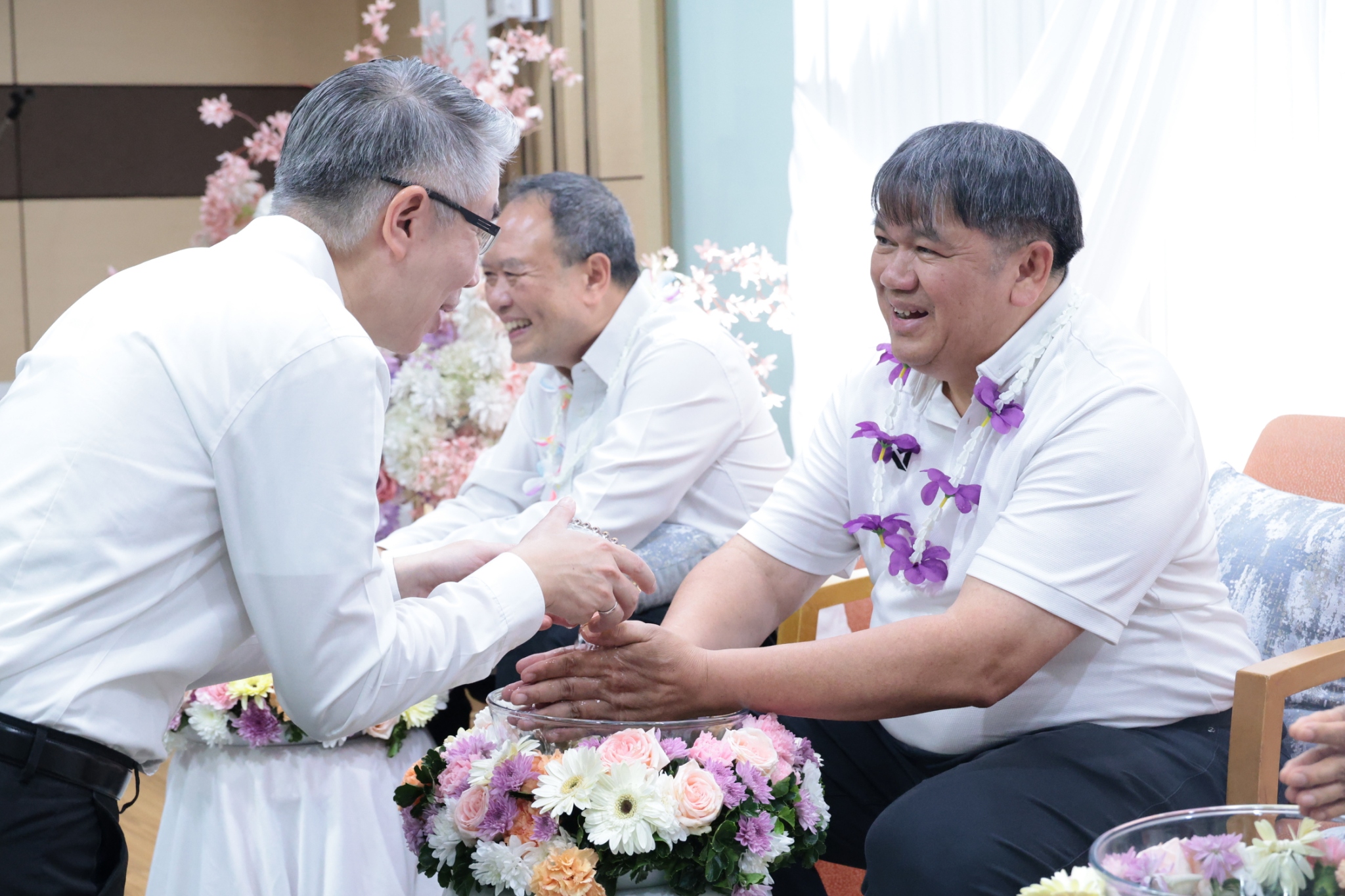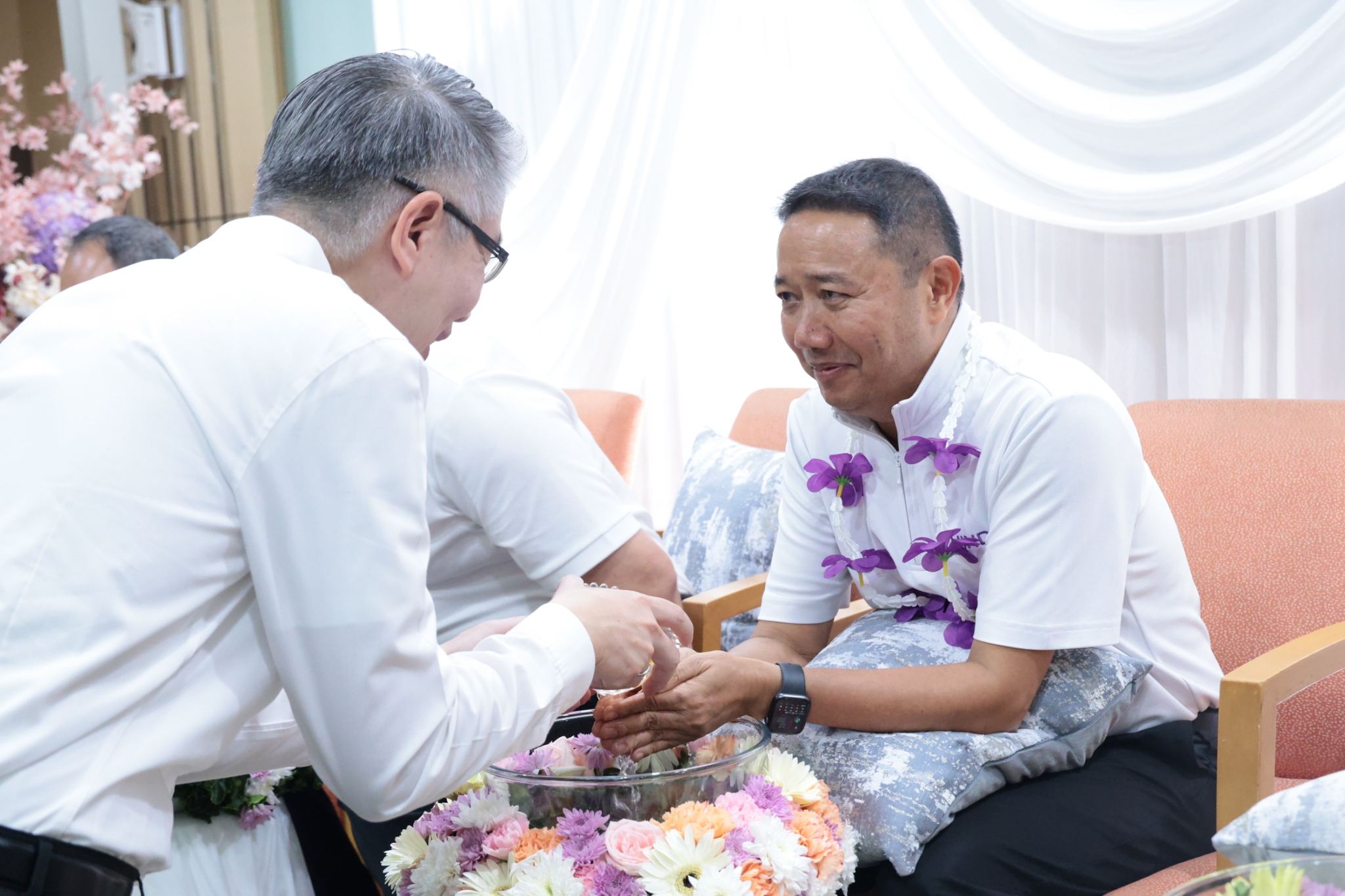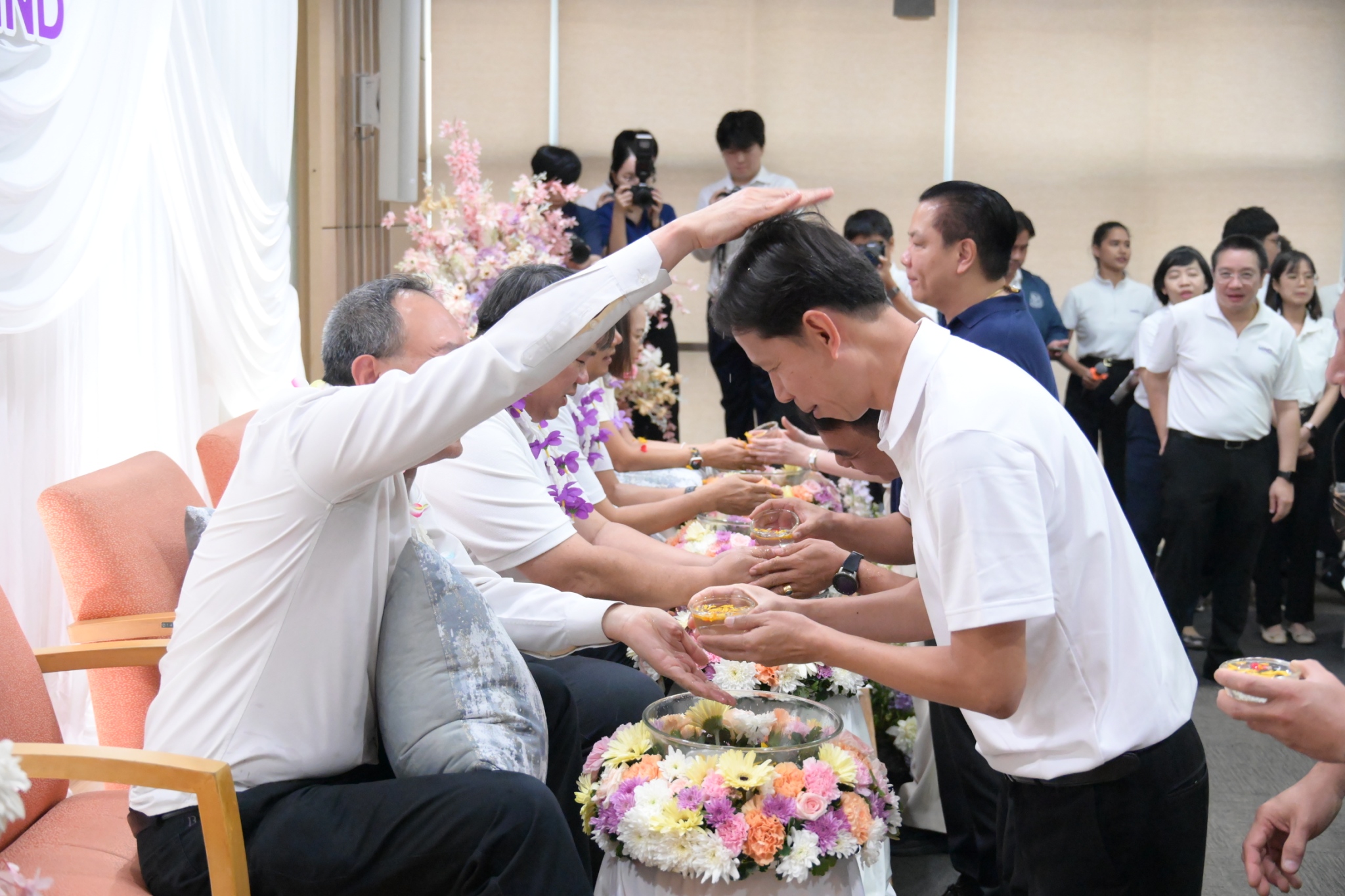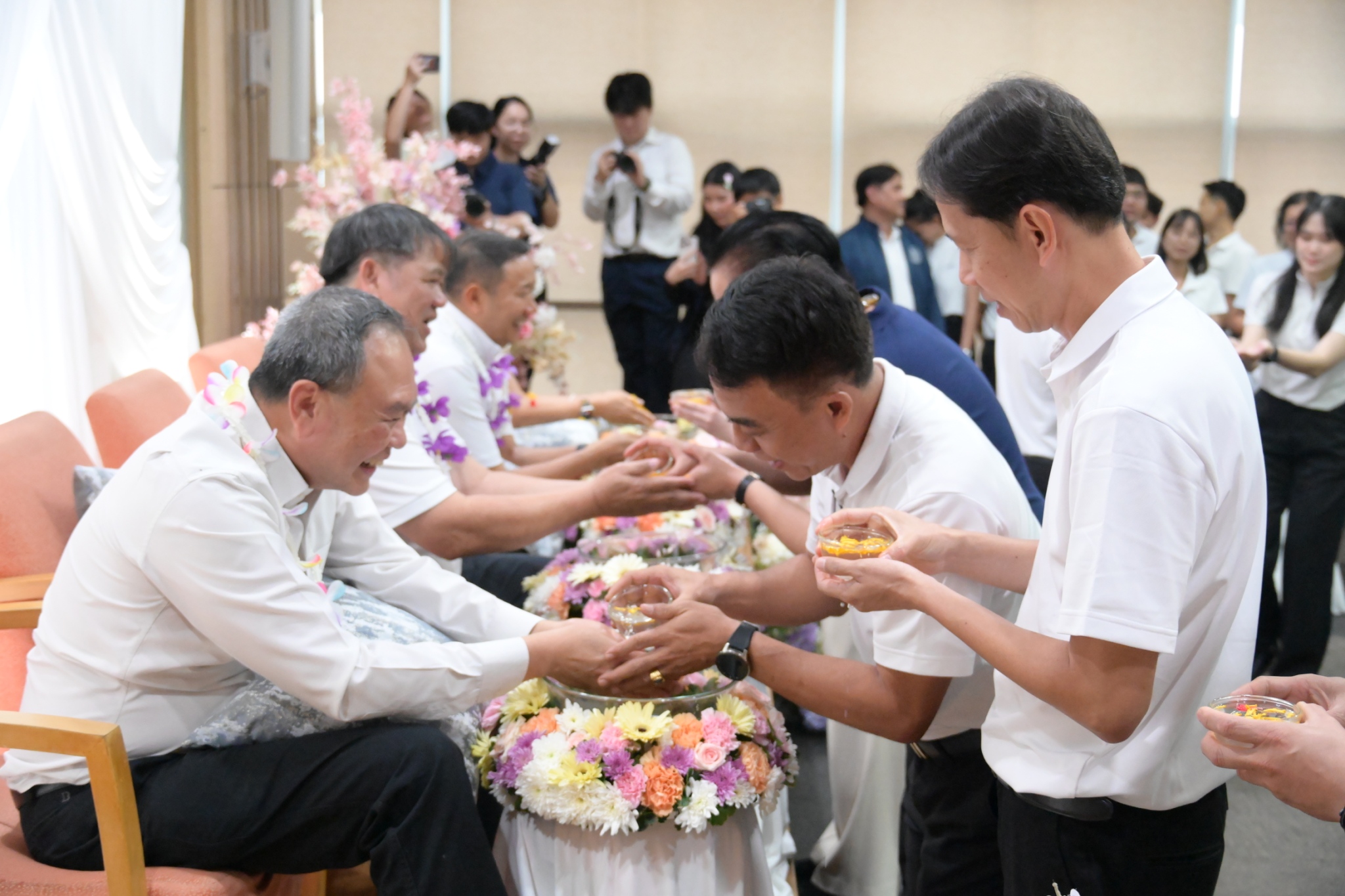 จากนั้น ได้มีพิธีรดน้ำขอพรผู้บริหารที่ครบเกษียณอายุราชการฯ โดยปลัดกระทรวงอุตสาหกรรม พร้อมด้วยคณะผู้บริหาร ข้าราชการ และเจ้าหน้าที่ ได้ร่วมกันรดน้ำดำหัว เพื่อแสดงมุทิตาจิต และขอรับพรอันเป็นสิริมงคล เพื่อสืบสานประเพณีอันดีงามของไทยต่อไป